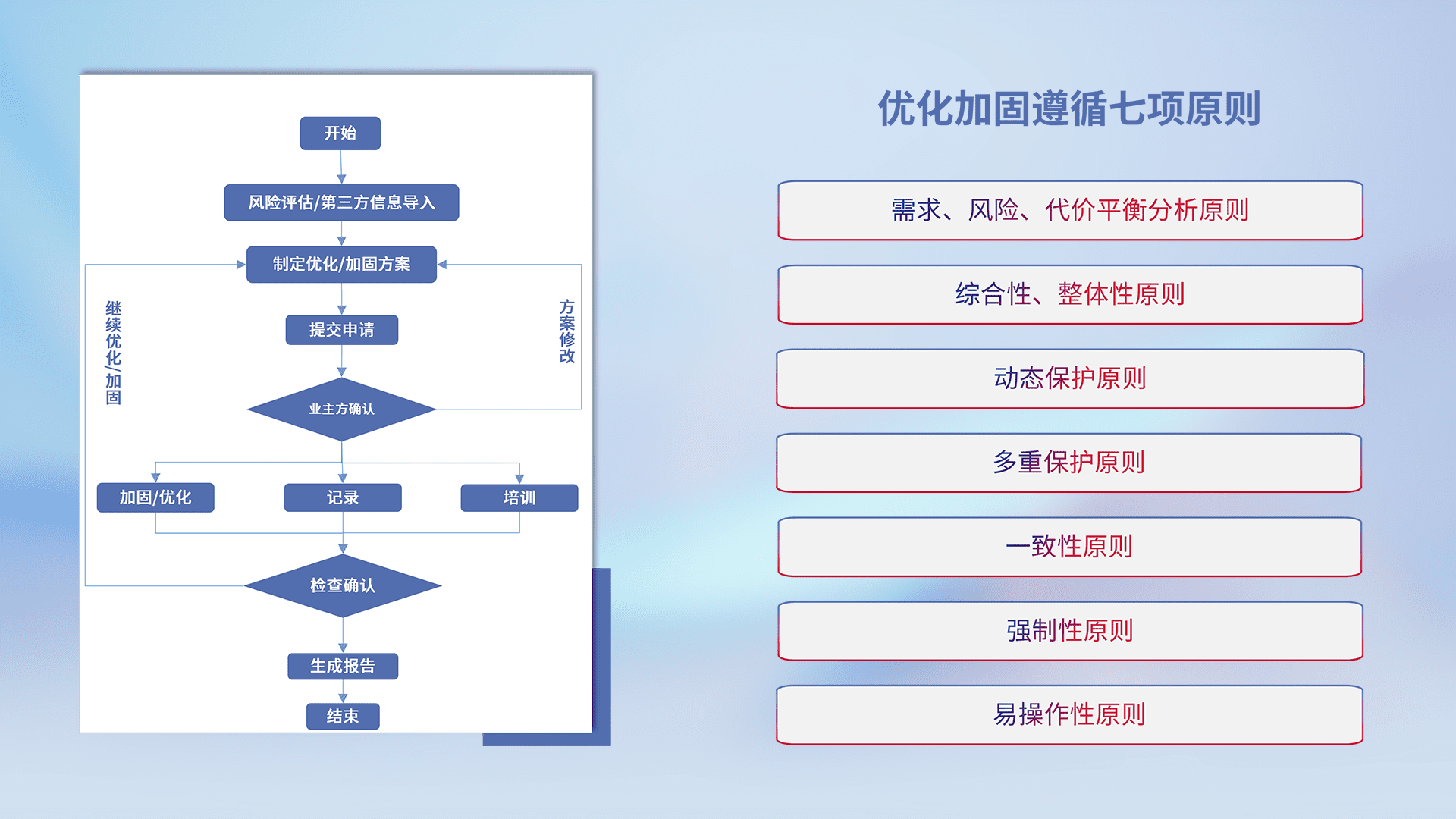 最大程度利用现有资产,,对评估发现的问题进行封堵与整改,,防止漏洞被利用,,,,提升整体网络安全性,,,为客户带来高标准的优化加固服务。。